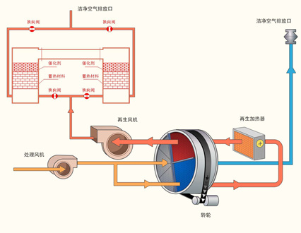 把有機(jī)廢氣加熱到760℃以上,將有機(jī)廢氣氧化生成CO2和H2O,從而凈化廢氣,并回收分解時(shí)所釋出的熱量,以達(dá)到環(huán)保節(jié)能的雙重目的,是一種用于處理中高濃度揮發(fā)性有機(jī)廢氣的節(jié)能型環(huán)保裝置。